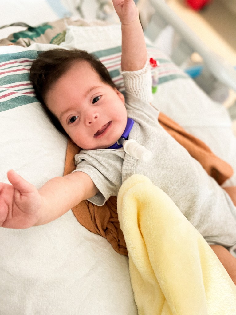 Violet was born in February of 2022 with a range of congenital anomalies including bilateral choanal atresia (closed nasal passage), microtia/atresia (absence of ear canals with ear malformations), micrognathia (recessed jaw), and Diamond Blackfan Anemia (inability to produce red blood cells). She lives with a tracheostomy tube for breathing, a Gtube for eating, soon to be bone conduction aids for hearing, and receives chronic blood transfusions every 3-4 weeks to refill her body’s supply of red blood cells. She is a miracle to say the least!